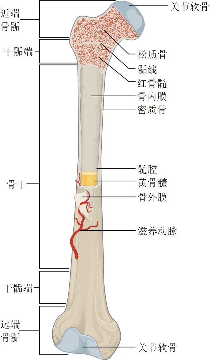 长骨的结构,以股骨为例。|GnolizX,Wikimedia Commons