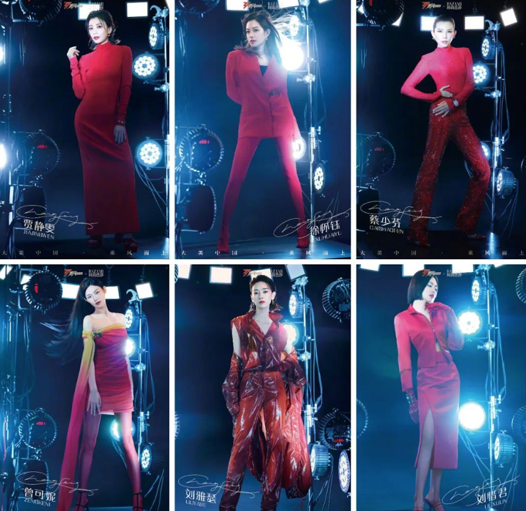 8)意大利奢侈品牌 Ferragamo(菲拉格慕)助力蔡少芬、徐怀钰、贾静雯、刘惜君、刘雅瑟及曾可妮六位明星身着以“菲拉格慕红”打造的2023春夏系列红色服饰亮相节目《乘风2023》。