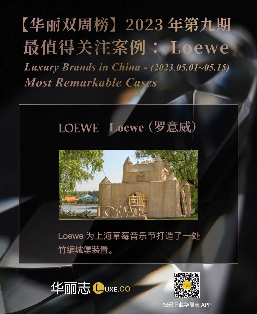 Loewe 在这场年轻人的音乐盛会上,通过中国传统竹编手工艺建造了一座城堡,真诚地向消费者传达对在地文化的理解与尊重,更能获得中国消费者的好感,同时将在地文化与品牌自身的DNA相结合,强化品牌的独特基因。