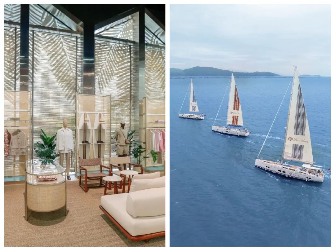 7)意大利奢侈品牌 Loro Piana(诺悠翩雅)在深圳湾万象城开设2023春夏度假系列快闪店,并在深圳湾举办了一场帆船出海活动,船身、船帆等各细节处均印有品牌 logo。