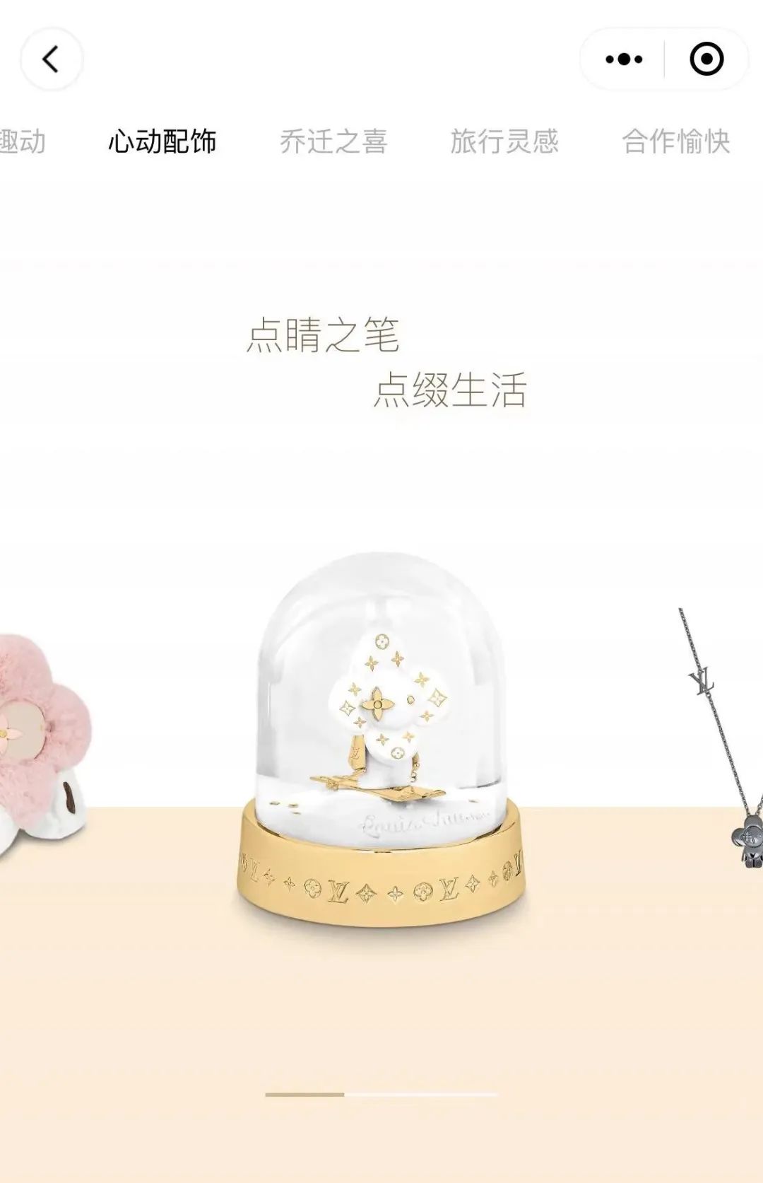基于顾客的需求和不同的送礼场景打造:“优雅趣动”、“心动配饰”、“香氛新意”、“乔迁之喜”、“旅行灵感”、“合作愉快”。比如“乔迁之喜”专门应对乔迁搬家的送礼场景,覆盖地毯、收纳箱、餐具、花瓶、调酒器等产品;“合作愉快”下集合了高尔夫球袋、耳机、笔记本等,尤其适合商务送礼;而“优雅趣动”和“旅行灵感”分别针对爱好运动和旅行生活方式的人群;“心动配饰”、“香氛新意”则更适合女性赠礼或自我犒赏。