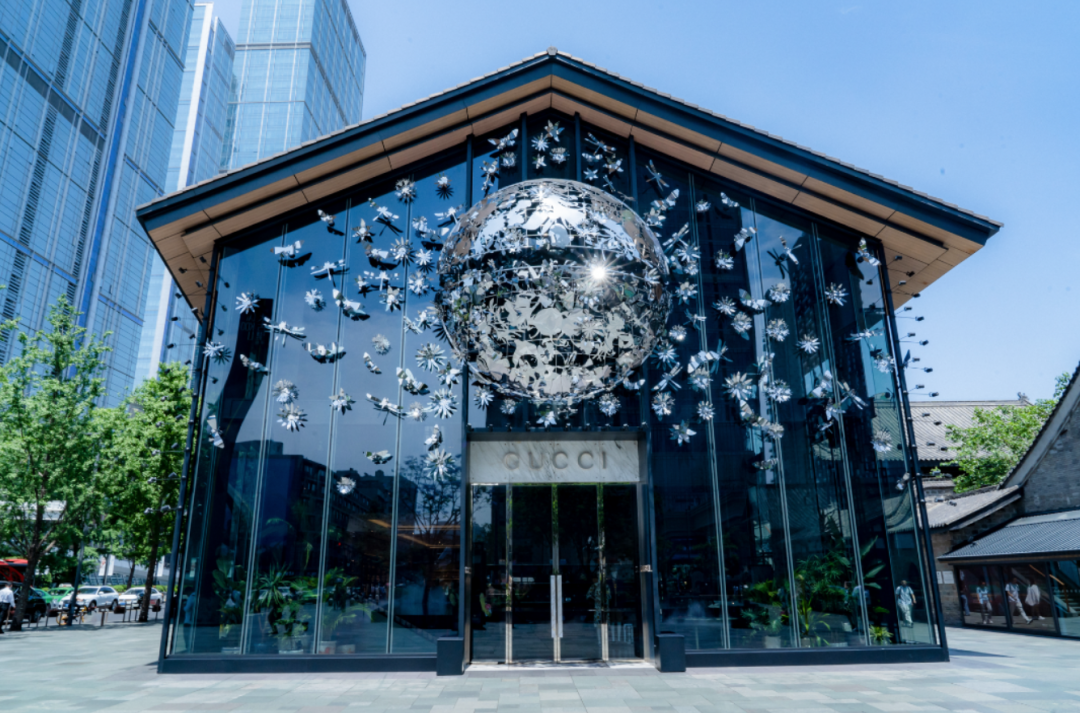 9)意大利奢侈品牌 Gucci(古驰)成都远洋太古里店、深圳万象城店的外立面焕新,新设计为造型各异的花卉与昆虫装饰,其灵感源自意大利艺术家兼插画家维托里奥·阿孔内罗(Vittorio Accornero de Testa)为 Gucci创作的 Flora 花卉元素。