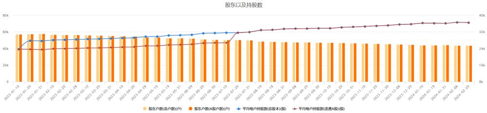 对于甘肃能源当前的表现,市场略显踌躇。数据显示,截至2024年2月20日,甘肃能源股东户数约为4.38万户,较上年同期5.67万户,减少1.29万户,降幅为22.75%。