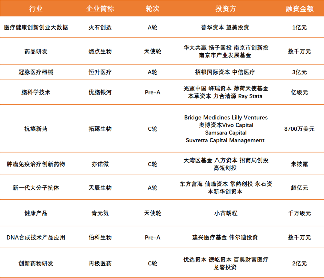2020年48个创新药获批上市;爱尔眼科遭艾芬怒怼,市值一日缩水275亿;新版国家医保药品目录将启用,119种新增新药入选,本周全球医疗健康领域融资事件共19起,其中国内10起,国外9起。