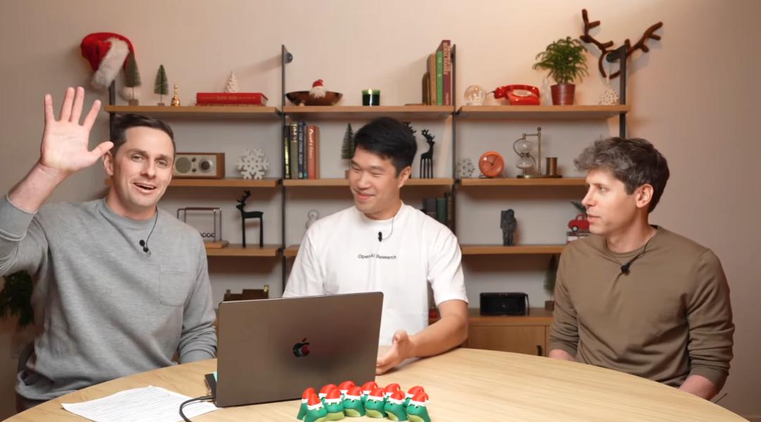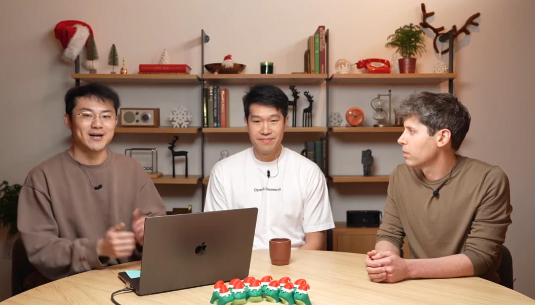 Mark Chen 打趣地表示明年要让 AI 演示一下自我提升,但这个说法似乎不够 PR,让 Sam Altman 赶忙说了一句:「Maybe not.」