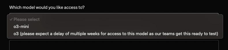 申请者必须填写一份在线表格,表格中会要求他们提供各种不同的信息,包括之前发表的论文链接及其在 Github 上的代码库,并选择他们希望测试的模型(o3 或 o3-mini)以及计划使用它们做什么。