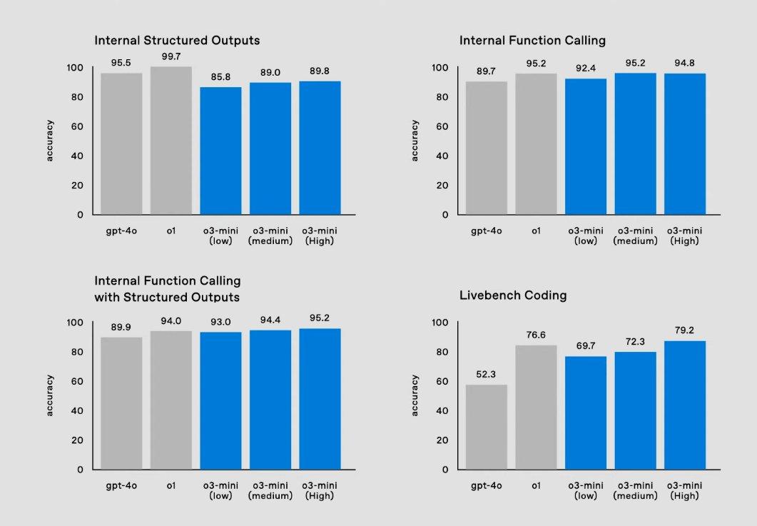 o3-mini 上所有的 API 特性以及相应的能力表现如下: