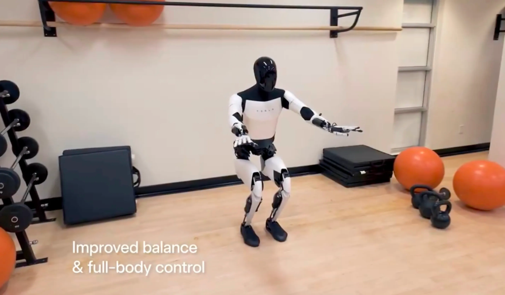 在视频演示中,可以看到 Optimus Gen 2 一边完成深蹲动作一边保持平衡。