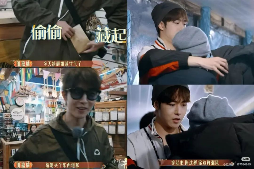 田嘉瑞作为郭敬明主捧的艺人,有了《云之羽》炒cp的过分丰富的经验后,在“花少6”主打一个雨露均沾显眼包,与哥哥、弟弟、姐姐、妹妹都有互动。