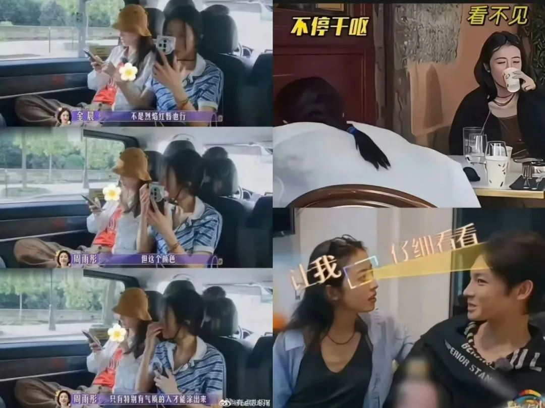 但降低存在感不是真要当小透明。芒果系艺人需要在为数不多的镜头里,尽可能通过一些行为细节立住自己特有的“得体”人设。