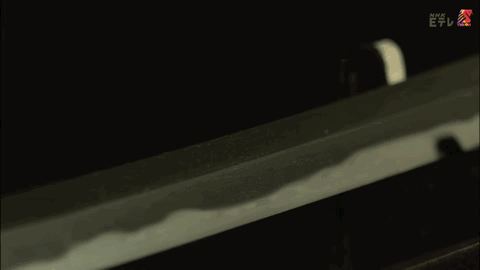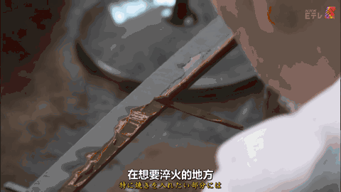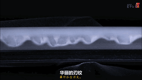 日本刀的锻造过程中,“土置”这一步是形成刃纹的关键,简单来说,刀身涂上黏土之后进行淬火,因为不同部位铁质的结构不同,冷却时间也有差异,就会形成白色粒子状的刃纹。