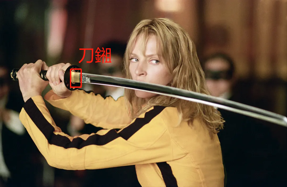 除去刀身,日本刀配有鞘,前文中,石井手中的那把刀,刀鞘叫作白鞘,电影中白鞘被刷上了黑漆,可能是为了切合人设,新娘的刀鞘则是刀拵( cún)。