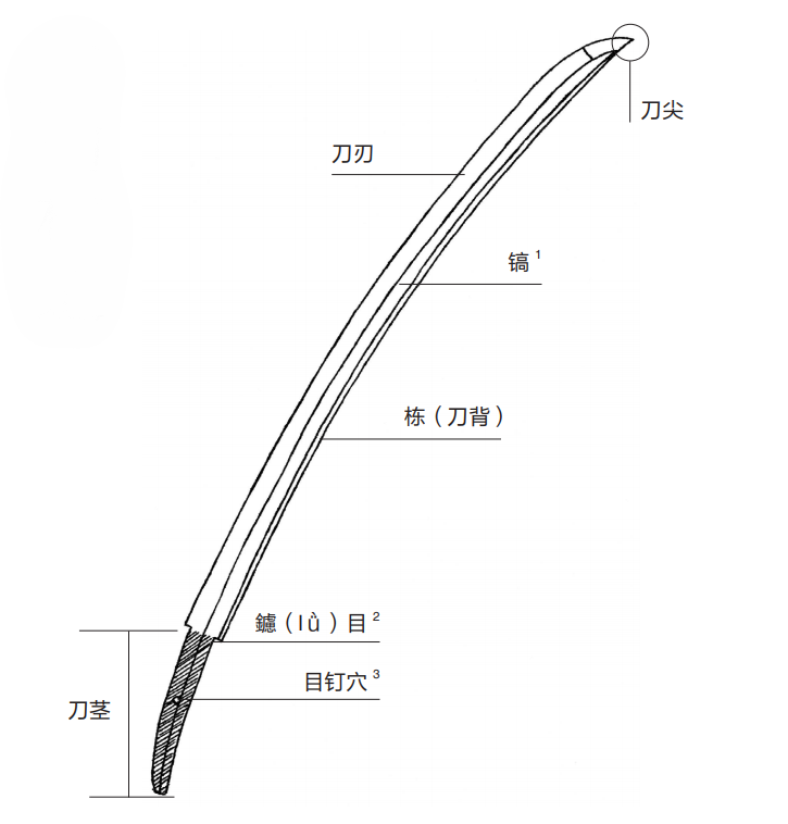 3.目钉穴 刀茎上镶嵌刀柄时使用的小孔。