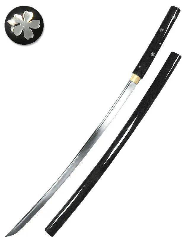 刀柄上刻有樱花图案,黑与白搭配在一起极具美感。