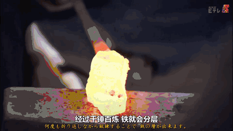 日本刀的锻造技术,要经过冶铁、制刃、淬火、磨砺等诸多过程。日本刀的原材料是自炼的钢铁,炼铁的方法称为“吹踏鞴”(bèi)。