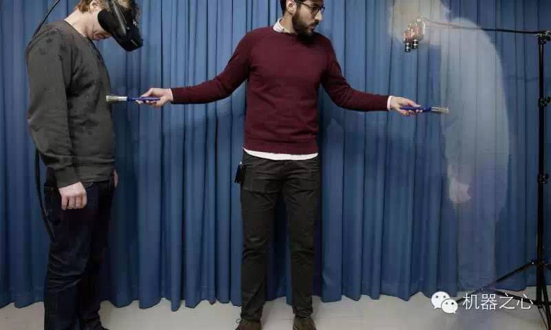 在Scientific Reports杂志上,瑞士的研究者们描述了一种拥有「隐形身体」的错觉。在实验中,参与者处于站立状态,头戴一个头盔显示器。接着,他们被要求低头观察自己的身体。通过这个头盔显示器,在本应该看到身体的地方,他们只看见一片空荡荡的空间。为了激发出隐形的感觉,研究者一只手握着一只大画笔,触碰她身体的不同部位;与此同时,另一只手握着另一只画笔,在空中做出完全相同的动作,而只让参与者看到第二只手。