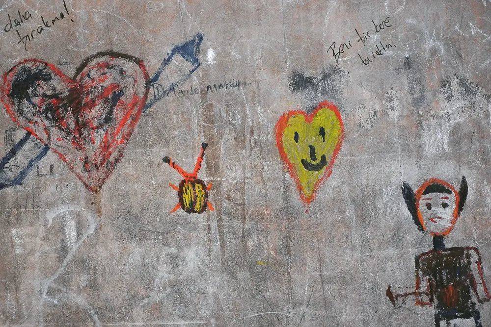 纯真博物馆外,一栋相邻建筑上的童趣涂鸦。