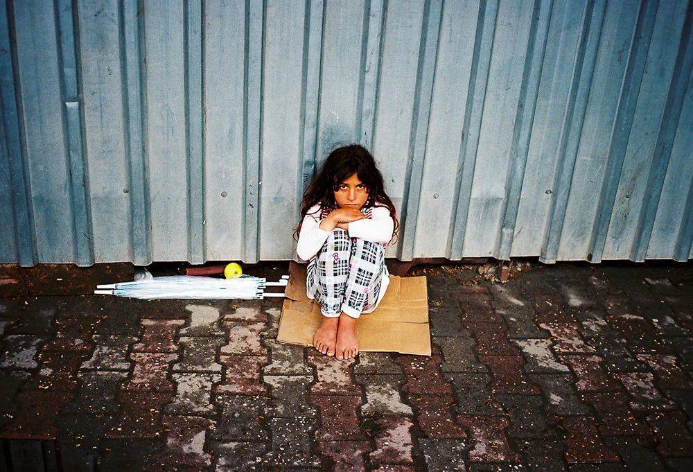 Kemeralti海滨大道上,一个在路边乞讨的库尔德小女孩。