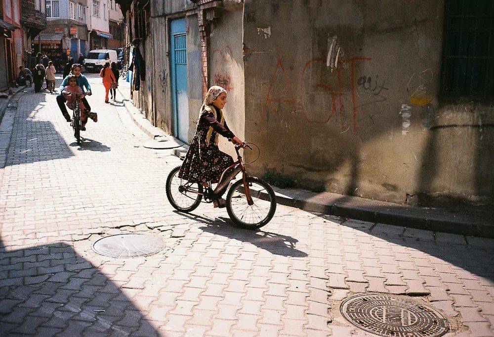 法提赫区,从坡道上骑自行车俯冲而下的库尔德少女。