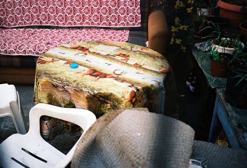 路过一个寻常人家的小院,被印有马鹿的桌布吸引。