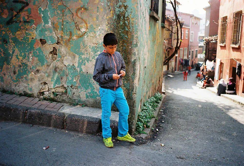 苏莱曼尼耶清真寺脚下的贫民街区。一个男孩默默地站在街角,似乎等着什么人。