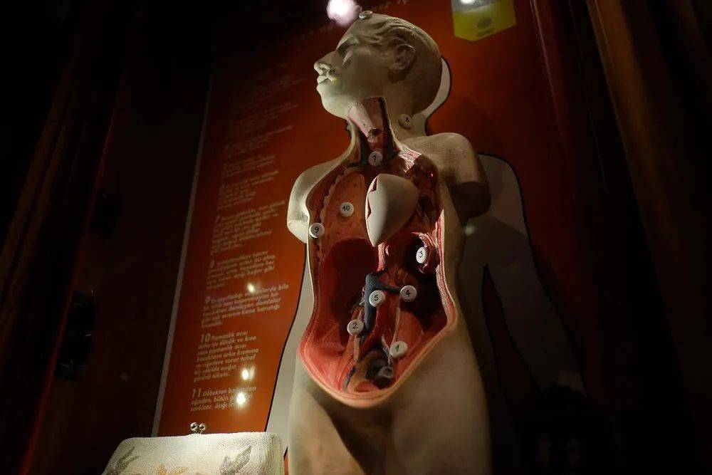 这里有一种近乎神圣的氛围,除了踩踏木板、楼梯发出的嘎吱声,参观者大多克制地保持着沉默。83个幽暗的玻璃陈列柜,编号对应着小说章节,它们像一个个忧郁的圣物箱,精心摆放着后奥斯曼时期的上千件物品。
