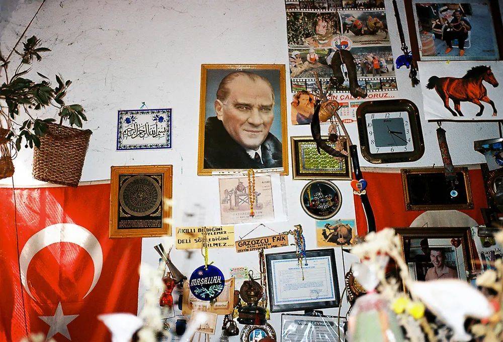 一家小型造船厂的员工办公室,墙面贴满花花绿绿的各式小玩意儿,土耳其国父穆斯塔法·凯末尔·阿塔图尔克的画像占据着最显眼的位置。