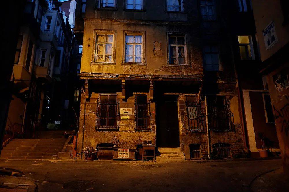 夜幕下的贝伊奥卢区。空无一人的街角,日渐衰败的老公寓楼里曾经住着“在傍晚听收音机的中产阶级家庭,如今挤满拿最低工资彻夜工作的年轻姑娘们。”