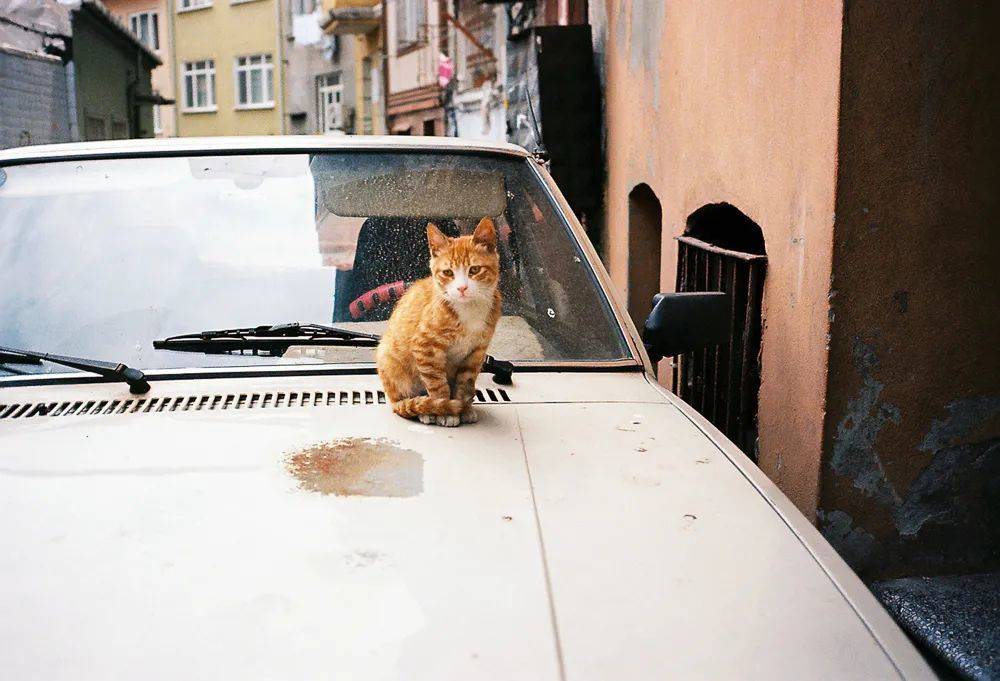 法提赫区,一只在汽车前盖上发呆的小橘。