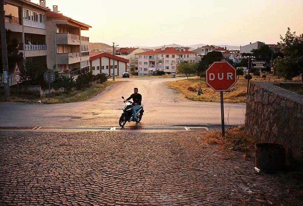 黄昏的郊外,一名骑着摩托车的男子从十字路口驶过。在帕慕克笔下,“呼愁”就像忧伤的帝国斜阳,笼罩着整座城市。