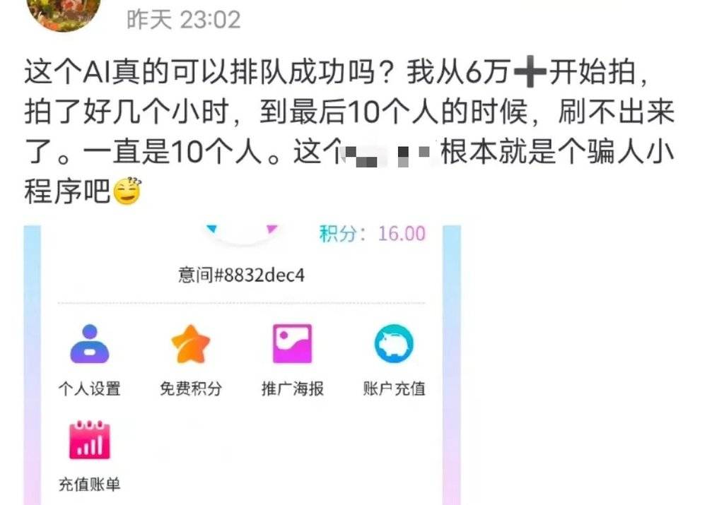 能总结出“绝世美人”这套关键词的网友,大概率遭受过了AI网站的折磨。许多人反馈称,自己苦等了半天,结果到最后十位时根本无法再刷新了,怀疑这就是在引流骗人。
