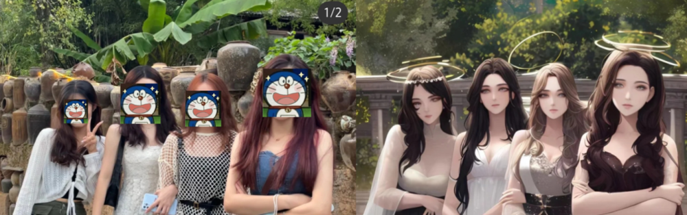 期待科技的力量,能把一张简单的出游合照,瞬间升级为天使下凡合影,每个人都拥有堪比动画主角的美貌。