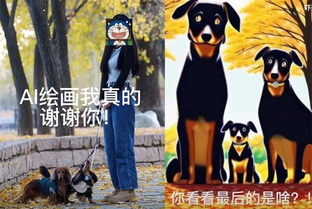 但AI反馈给她的,是腊肠犬一家三口。