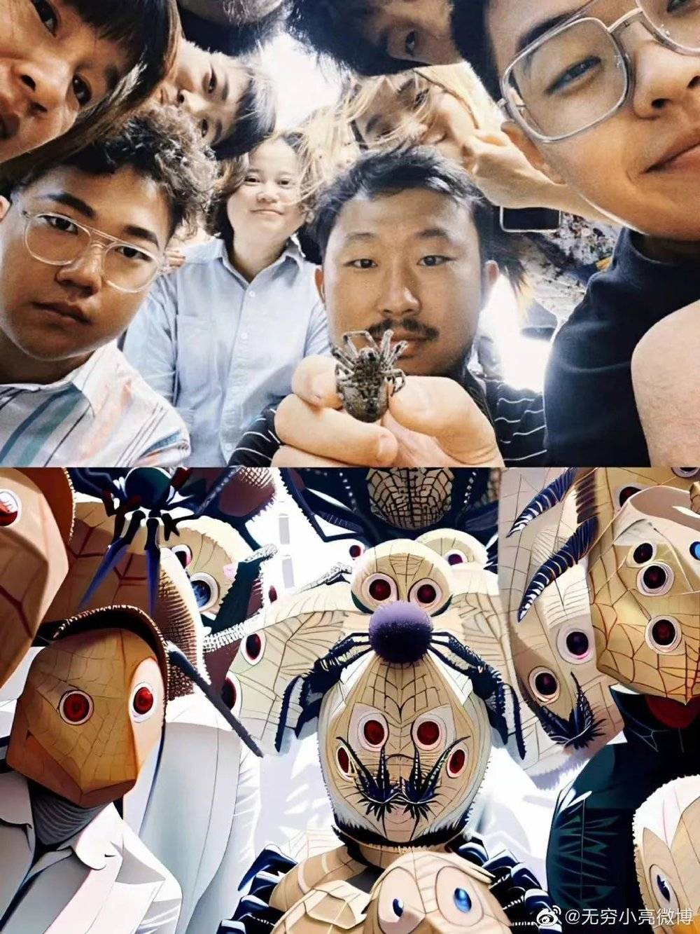 智慧,源于两张图之间乍一看很像。比如狐主任@无穷小亮用把同事合照喂给了AI,乍一看还挺像模像样。