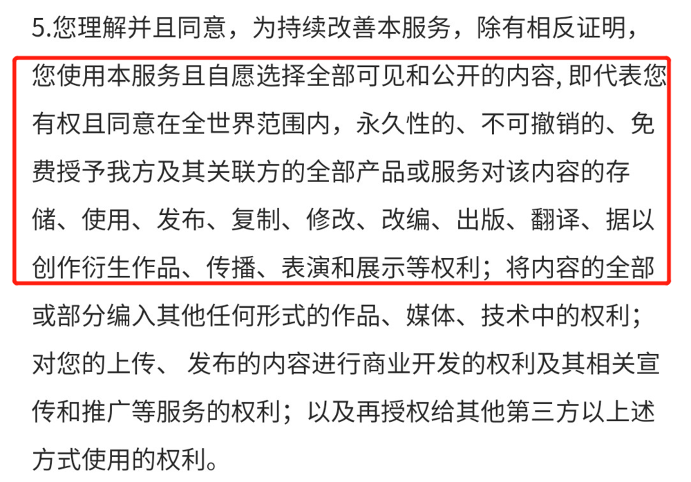 同时还规定了,你上传到平台里的公开内容、哪怕是私人照片,都默认授权给平台。算是让步了一定的个人隐私。
