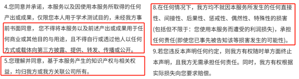 以近期网上热度较高的某AI绘画程序为例,它的用户协议中规定,原则上这些AI产出的图不得进行公开与传播。倘若因此引来索赔或其他损失,这责任得网友担着。