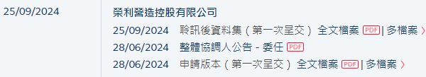 2024年9月25日,来自香港的荣利营造控股有限公司 Wing Lee Development Construction Holdings Limited(简称"荣利营造”)在港交所披露聆讯后的招股书,或很快在香港主板挂牌上市。其此前于2024年6月28日递表。荣利营造聆讯后招股书链接:https://www1.hkexnews.hk/app/sehk/2024/106583/documents/sehk24092501751_c....