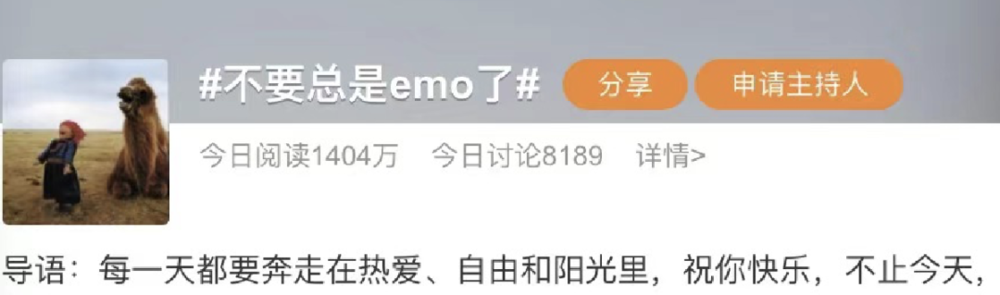 2 月某天的热搜话题叫你不要 emo 了。你以为我们不想“奔走在热爱、自由和阳光里”嘛?