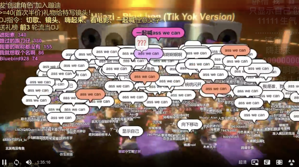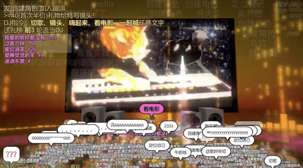 写到这里时,是周四的 00:27。我拿起手机,打开修勾夜店,看到左上角显示有 4 万人在直播间中、跟着 Doja Cat 的《Say So》展现他们的复古舞姿,屏幕上方不断飘过“创建角色”,仍有无数人在凌晨进入这个直播间。