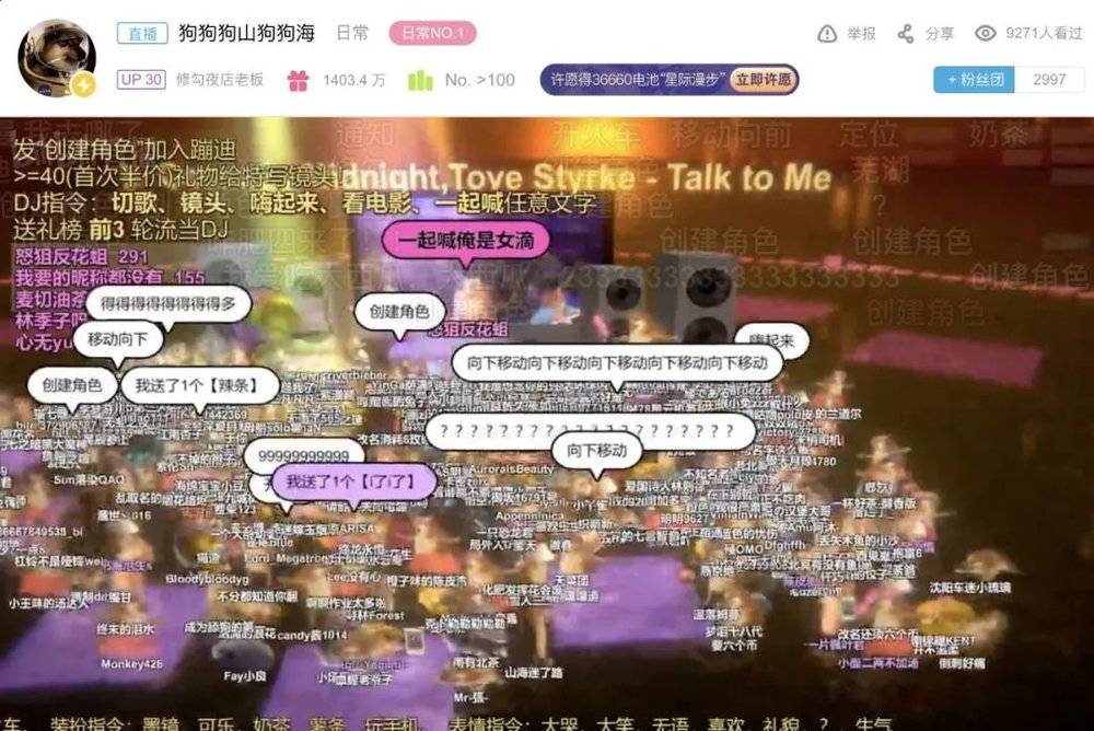 没能杀死你的只会让你做强做大。B 站直播间无人数上限限制,所以修勾夜店 2.0 解除了当年小店的人数限制,数万只小狗闻讯赶来,最高峰时段甚至有 60 多万只齐聚一堂。这不只是修勾夜店,这已经是狗镇……哦不,狗城。