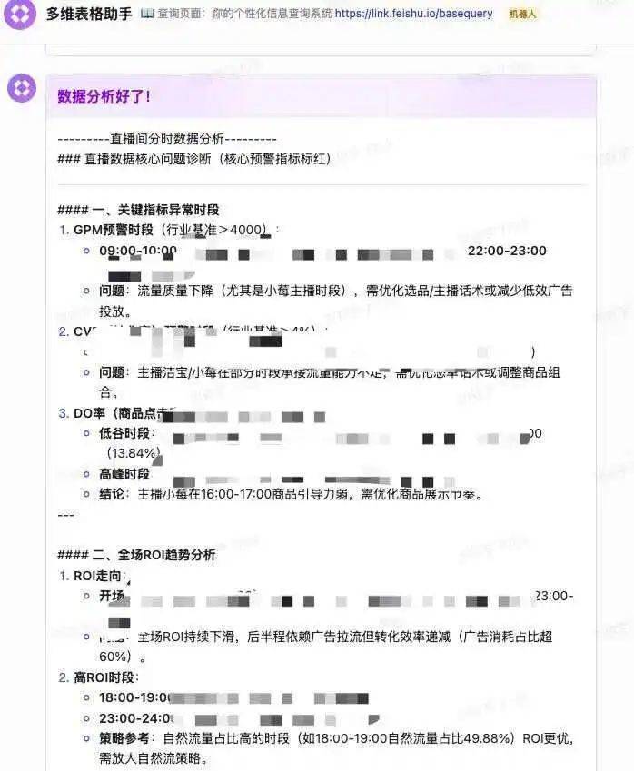 我们觉得,本地化部署是一条路径,但在效率和性价比上不是最优解,反而是全面接入DeepSeek的飞书多维表格,能在数据分析复盘、主播话术、直播间内容策划、短视频脚本、视觉化等多个维度提升产出效率,只不过现阶段AI产出更多是“半自动化”。