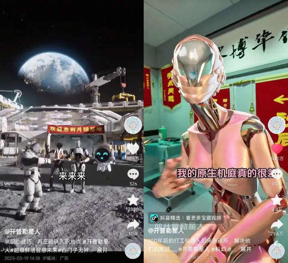 内容创作层面,我们看到AI猫猫、AI奶奶、AI乖孙等细分创作赛道相继爆火,正在批量孵化爆款账号。