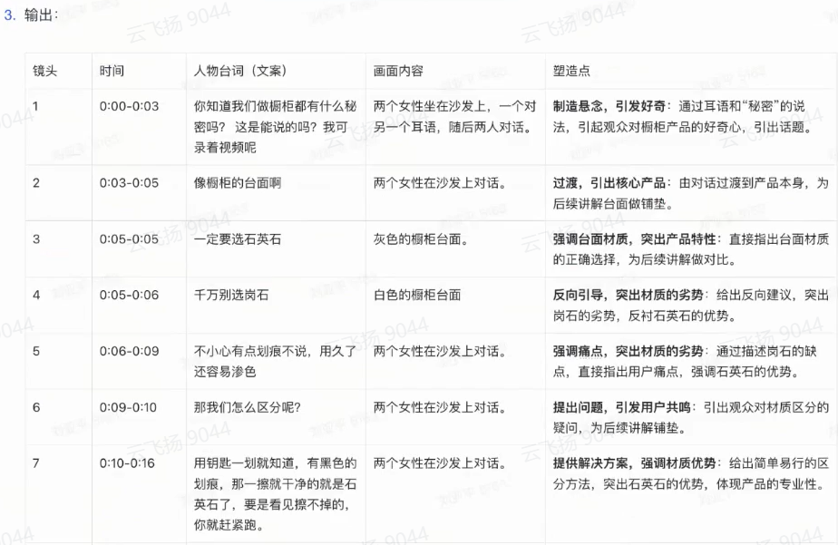 短视频脚本也是同样的逻辑,现在交个朋友不仅积累了10~20T的爆款卖货视频,还能爬取当下的热点词和热点话题。这让我们可以做到先用AI拆解爆款短视频的脚本,再让AI生成短视频的拍摄脚本。