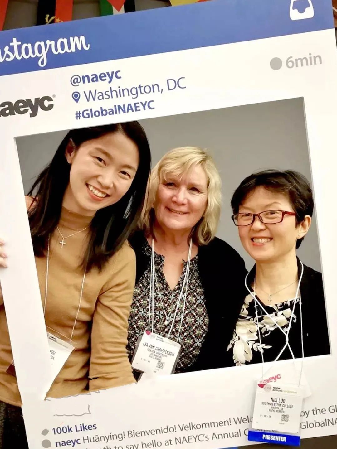 再加上那时候我先生也在从事教育行业,中美两地飞,所以2011年那会儿在美国时,我就大着肚子到处参加幼教活动。机缘让我在一次教育论坛上认识一位教授Dr. Nili,她是美国幼儿教育协会(NAEYC,全称National Association for the Education of Young Children)首位亚裔董事会成员,也是美国西南学院(堪萨斯)的早期教育主任,就果断跟着她攻读早期教育硕士,我的研究课题就是中美幼教差异。