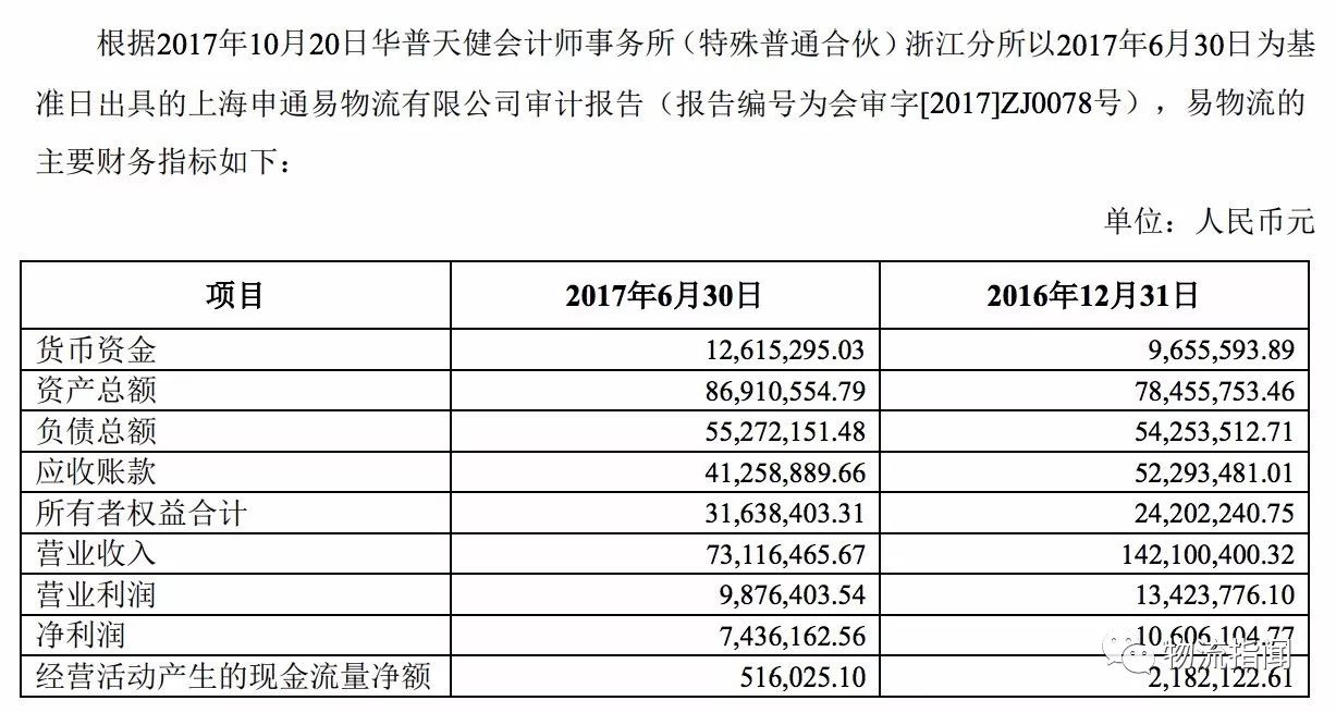 公告称,在未来三年中,易物流将力争全国仓储面积达到100万㎡,日均订单处理量突破100万单,力争未来五年建成百亿规模的综合型供应链服务提供商。易物流及管理层做出的业绩承诺为,2017年度、2018年度、2019年度、2020年度净利润分别不低于1600万元、1979万元、2571万元、3213万元。