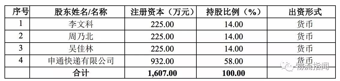 11月15日晚,申通发布《关于全资子公司收购上海申通易物流有限公司部分股权并对其增资暨关联交易的公告》。公告称,申通快递拟以10648.80万元收购关联人吴贤林持有的上海申通易物流有限公司54.00%的股权。而吴贤林为公司实际控制人之一陈德军先生配偶之弟。