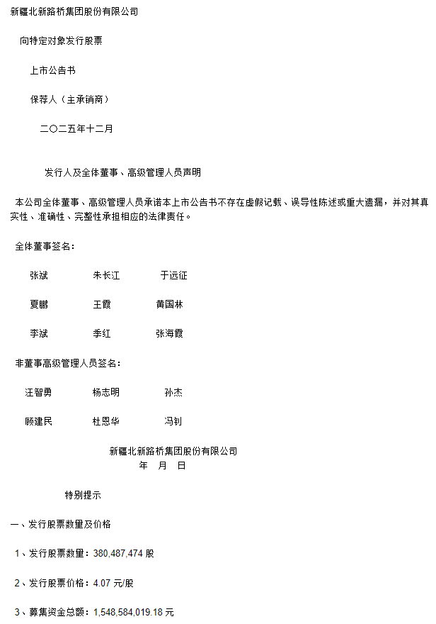 北新路桥:新疆北新路桥集团股份有限公司向特定对象发行股票上市公告书