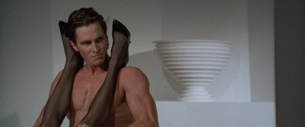 他会因为预定不到高档餐厅,焦虑暴怒到满脸流汗;会因为投行同事的名片比自己精美,嫉妒得想立刻掐死对方;他会随意在街头枪杀流浪汉,仅仅是因为他可以如此;他猎杀身边的金发女人,并且在和她们交媾时对着镜子摆pose欣赏自己的肌肉。