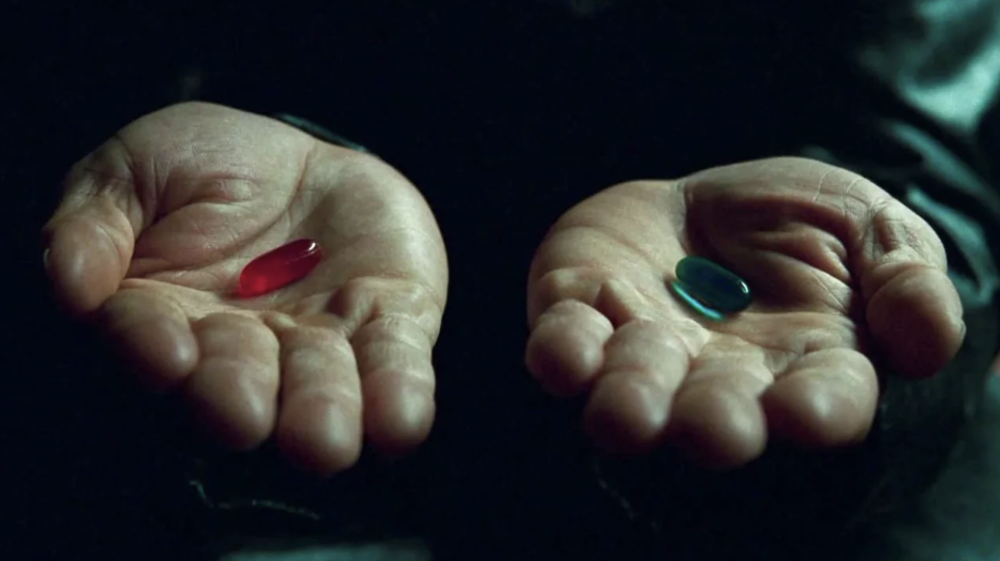 以incel为主的男权组织,借用了《黑客帝国》中著名的“蓝丸与红丸”来指代现代世界。