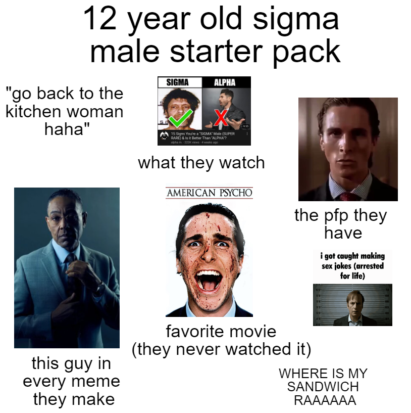 外网对西格玛男人meme图的调侃:一个12岁西格玛男人的新手包